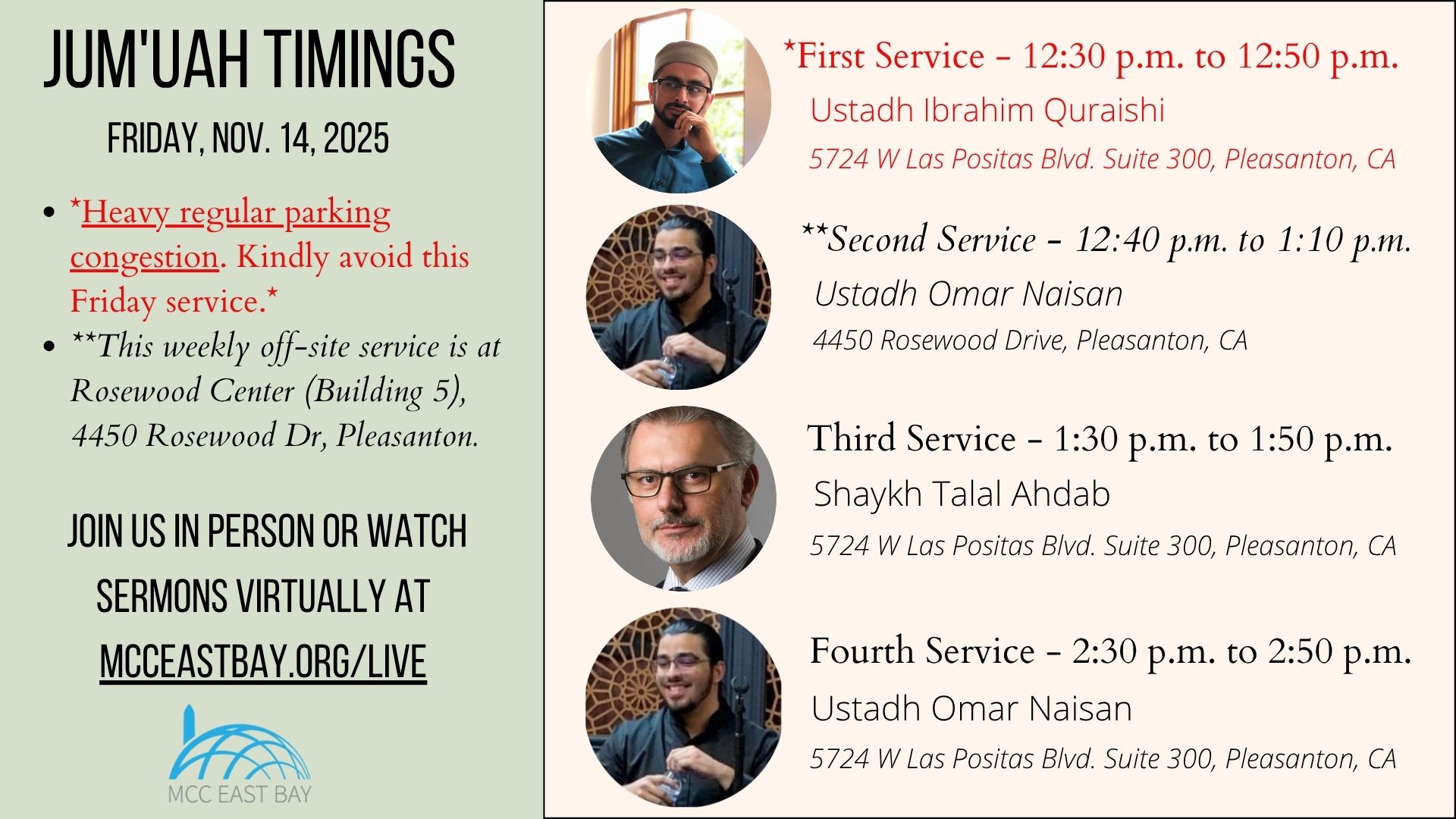 MCC East Bay 5724 W Las Positas Blvd #300, Pleasanton, CA, United StatesJoin us for an inspiring evening of remembrance with our beloved teacher, Shaykh Yahya Rhodus, to connect the listener to the Prophet ï·º and his teachings. The more we know about his life, character, and way, the more we will come to love and follow the one beloved to Allah. PDF for gathering: https://bit.ly/39mLNXV Thursday, […]