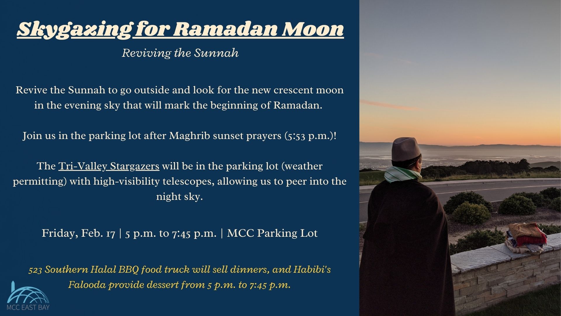 *Based on Moonsighting*, Start of Nightly Taraweeh Prayers Feb 17 *Based on Moonsighting*, Start of Nightly Taraweeh Prayers 8:00 pm - 10:00 pm