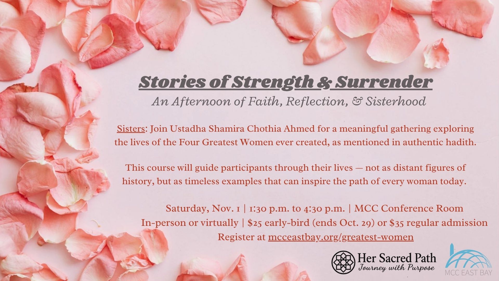 Walk in the Footsteps of the Greatest Women in History | Ustadha Shamira Chothia Ahmed Nov 1 Featured 1:30 pm - 4:30 pm Walk in the Footsteps of the Greatest Women in History | Ustadha Shamira Chothia Ahmed