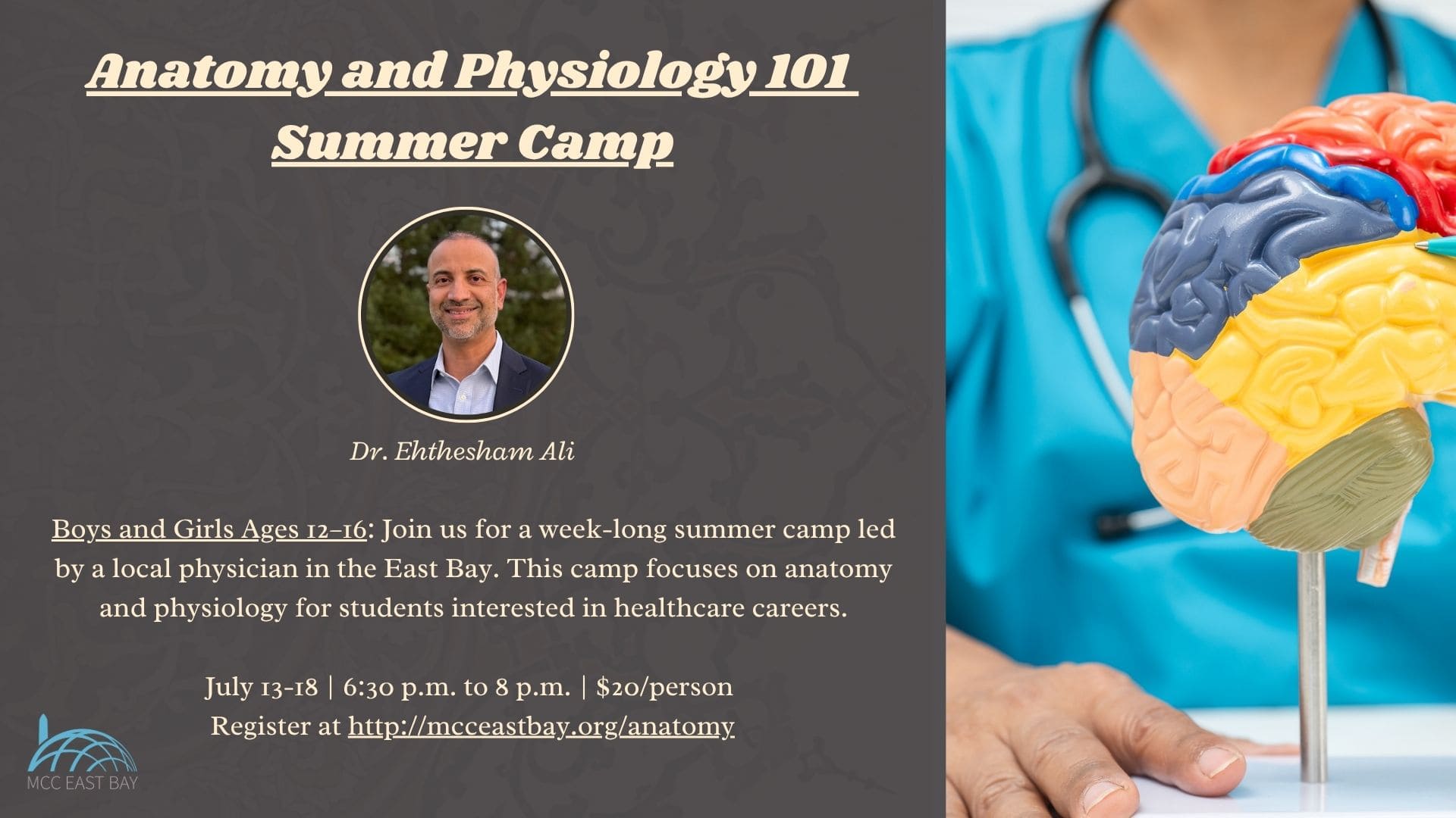 Anatomy and Physiology 101 Summer Camp | Dr. Ehthesham Ali Jul 13 Anatomy and Physiology 101 Summer Camp | Dr. Ehthesham Ali 6:30 pm - 8:00 pm