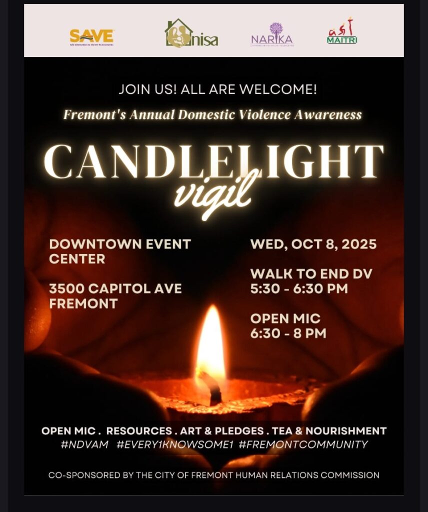 During our Domestic Violence Awareness Month Vigil at the Downtown Event Center in Fremont on Wednesday, Oct. 8, the MCC Social Services Team and community members gathered to honor survivors, remember those we’ve lost, and show solidarity for change.