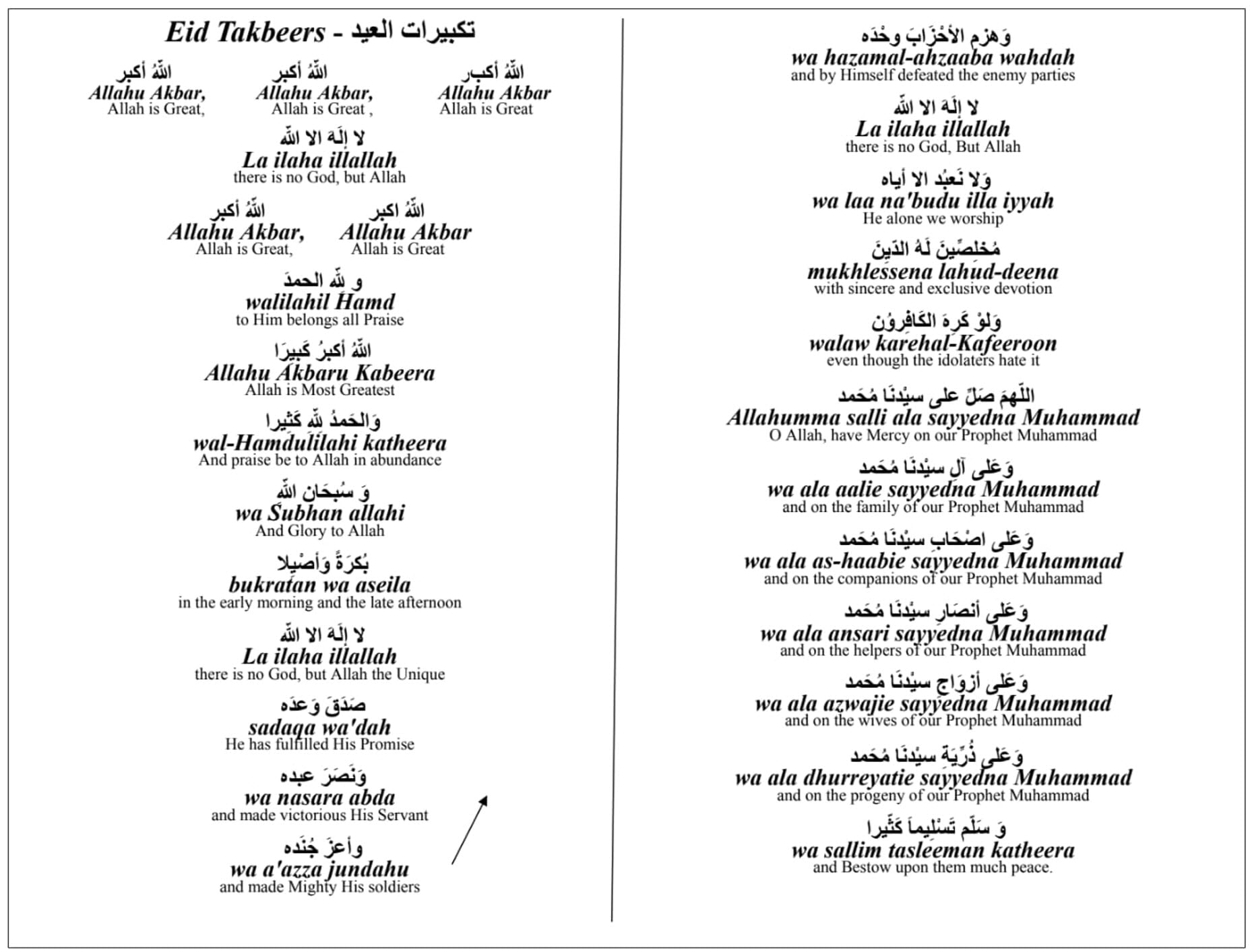 - *Please arrive at the MCC Prayer Hall for Takbeerat by 7:15 a.m.*