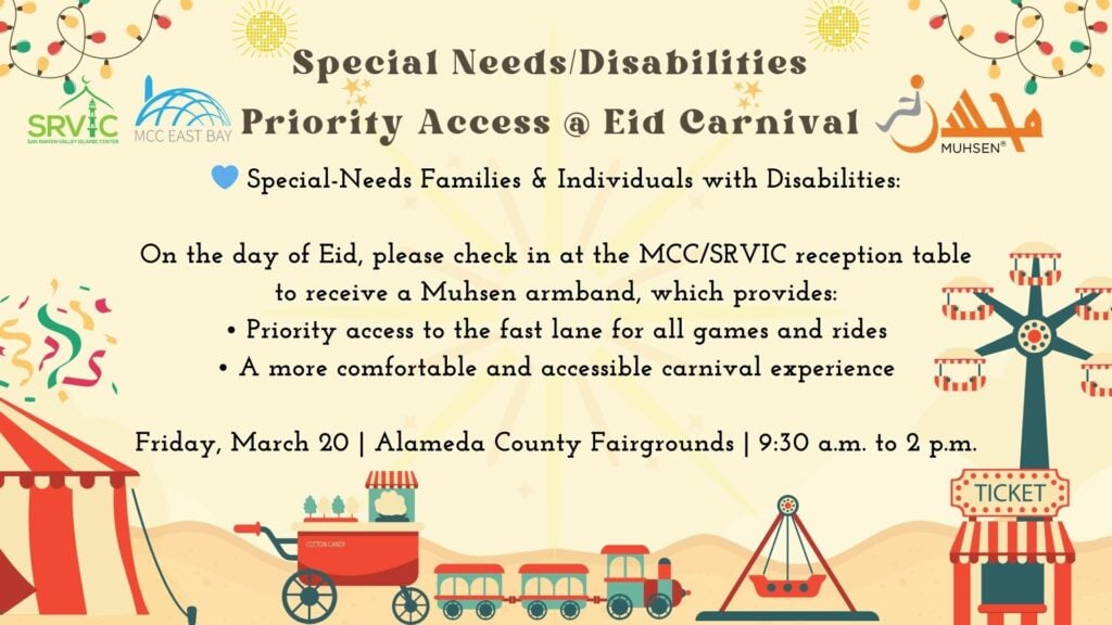 Because we will be celebrating Eid at the Fairgrounds this year, MCC will not be hosting our Annual Eid Carnival.