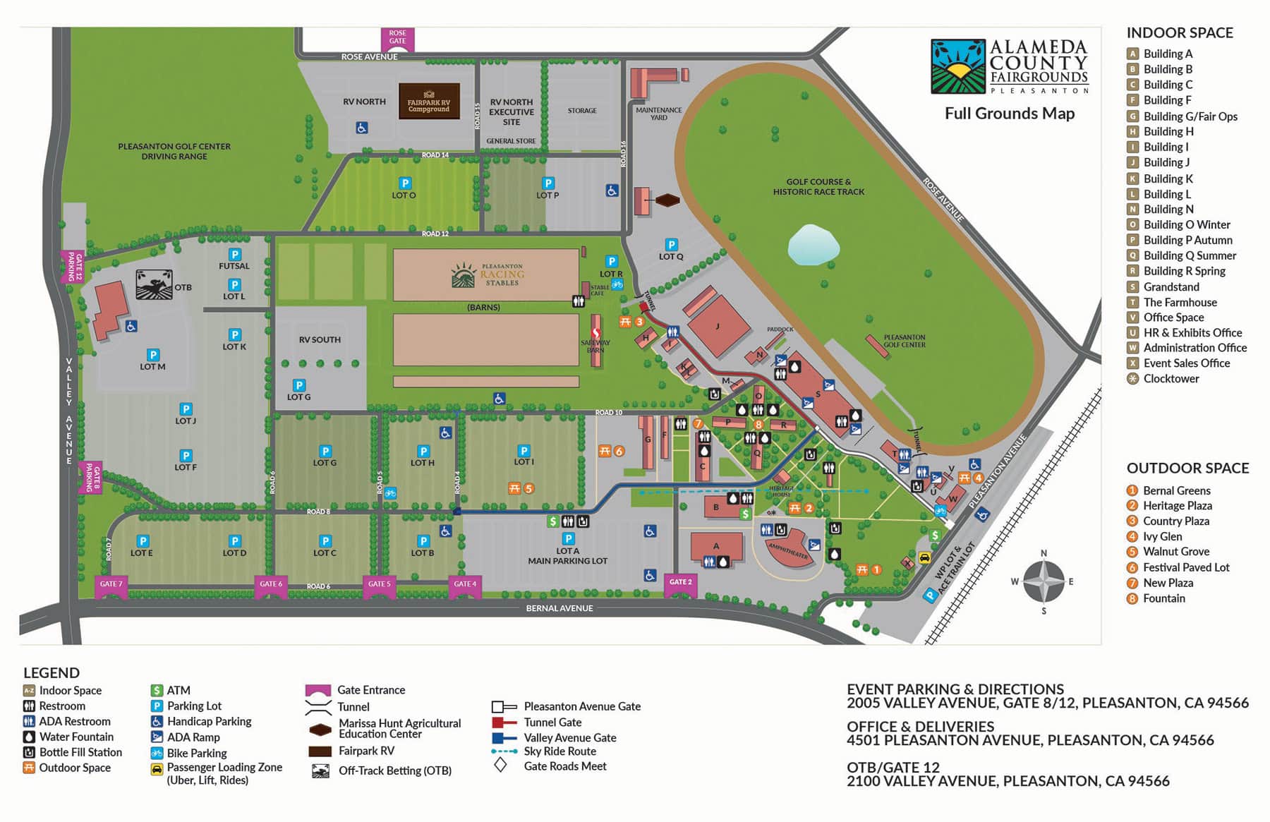 Prepay for parking by using this link to save time in line and enter through Valley Ave entrances: gate 12 (preferred) or gate 8. (See map of Alameda County Fairgrounds.)