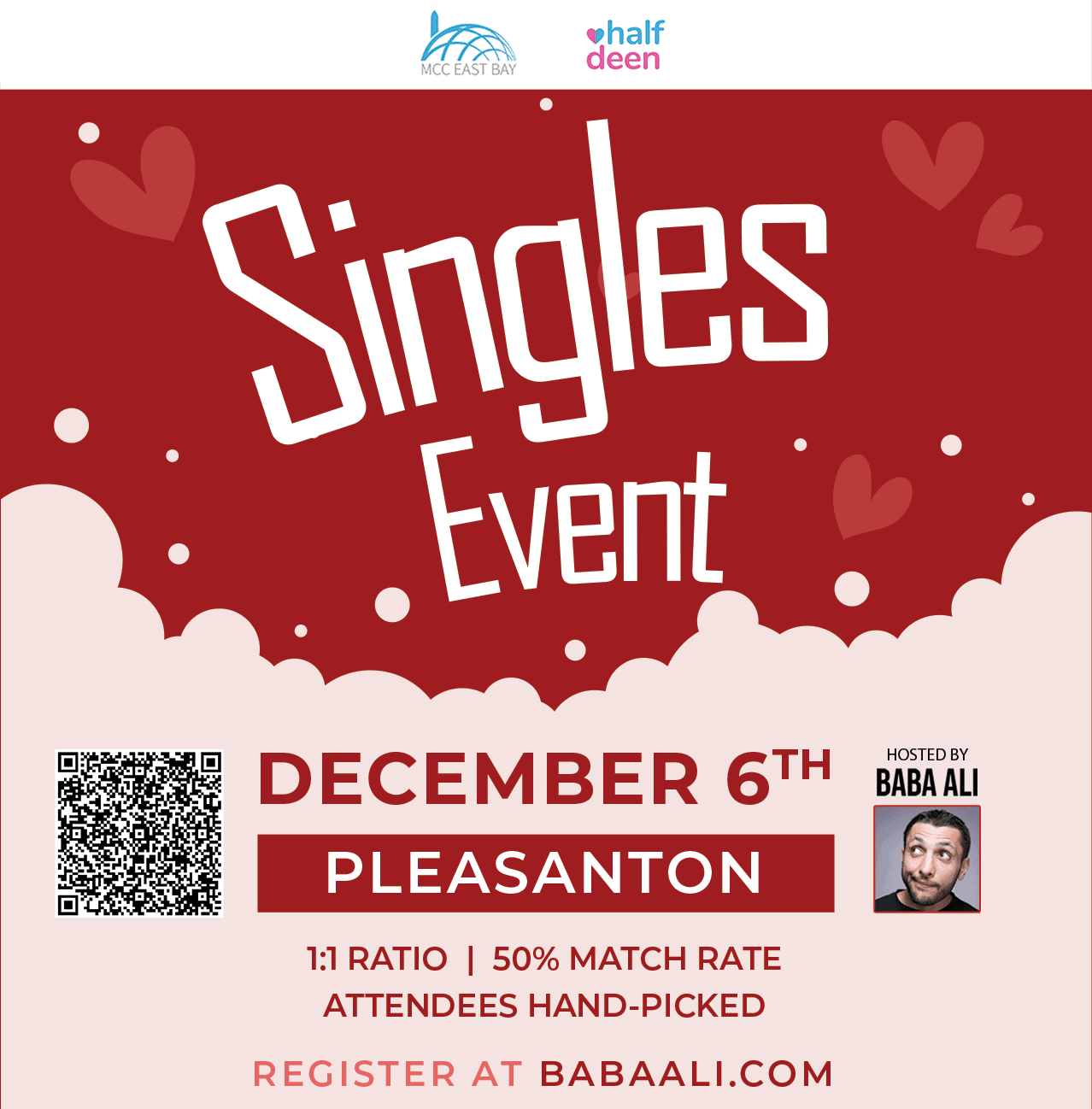The MCC and Muslim Marriage Canada are partnering up with Half Deen to bring you a Muslim Singles event using the HOD Live Process in Pleasanton, CA, on Dec. 6, 2025.