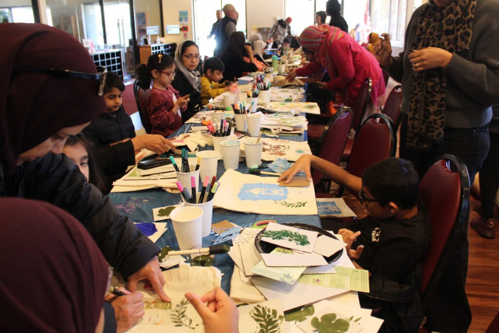For the first Saturday, children and parents came together to create custom tote bags, using the flower hammering technique. They gently transferred the natural colors and shapes of flowers and leaves mentioned in the Qur’an onto canvas bags.